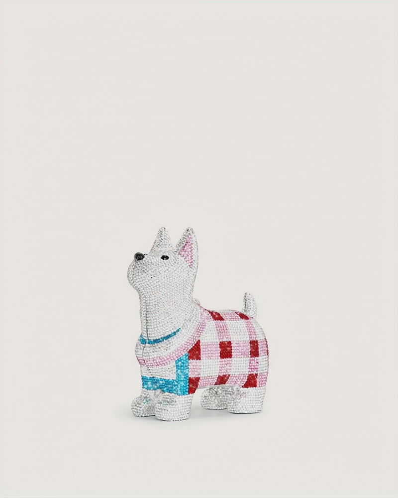 Eden Puppy Shape Faux Crystal Clutch - White